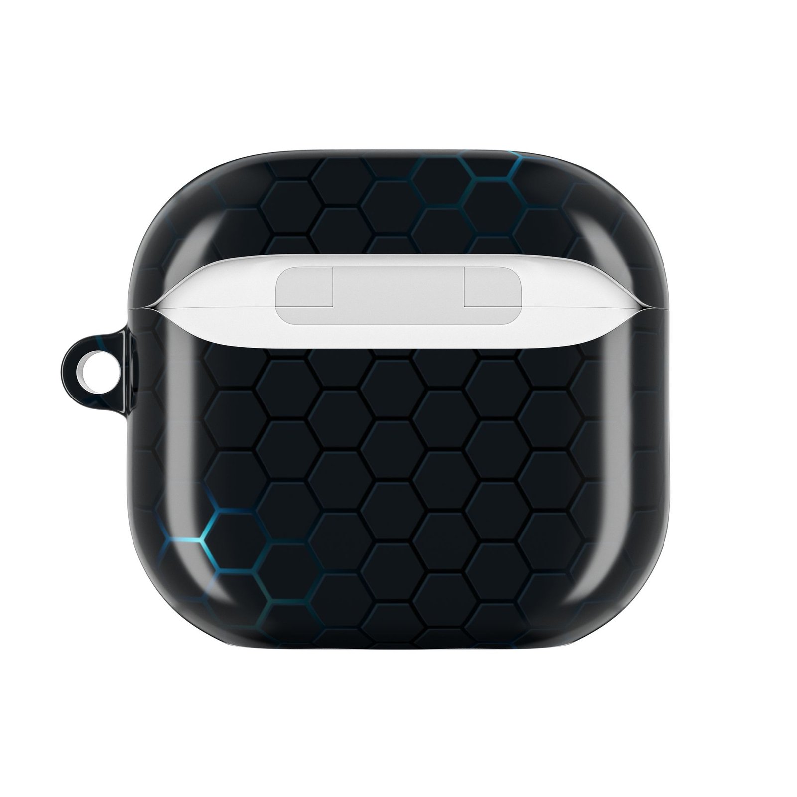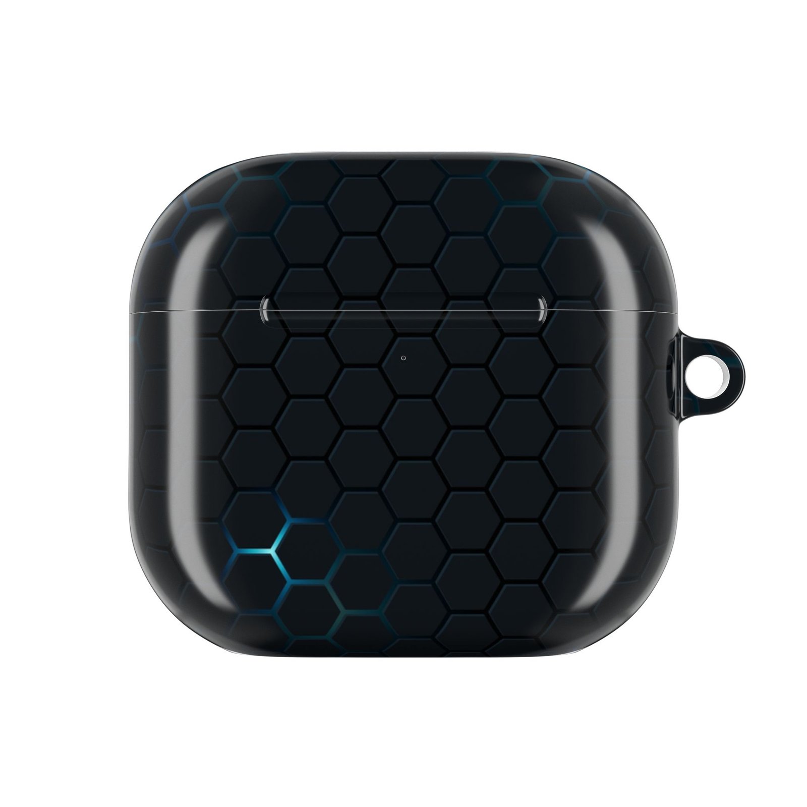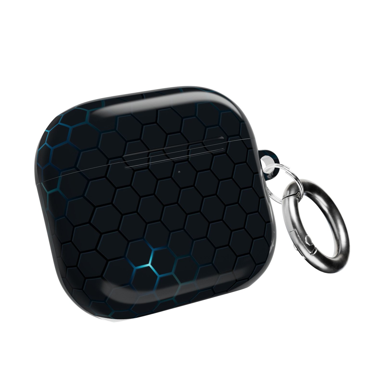 A slim, glossy AirPod case that balances modern style with everyday protection. The low-profile polycarbonate shell slips into pockets without bulk while a subtle hex pattern with cool blue highlights gives it a tech-forward, minimalist look. It keeps your charging port accessible and supports wireless charging so you can power up without removing the case. A sturdy carabiner clip makes it easy to attach to bags or belts for commuting, travel, or quick errands. Durable, scratch-resistant, and made in South Korea—this case lets your earbuds wear a sleek, resilient skin that fits an active, design-minded life.